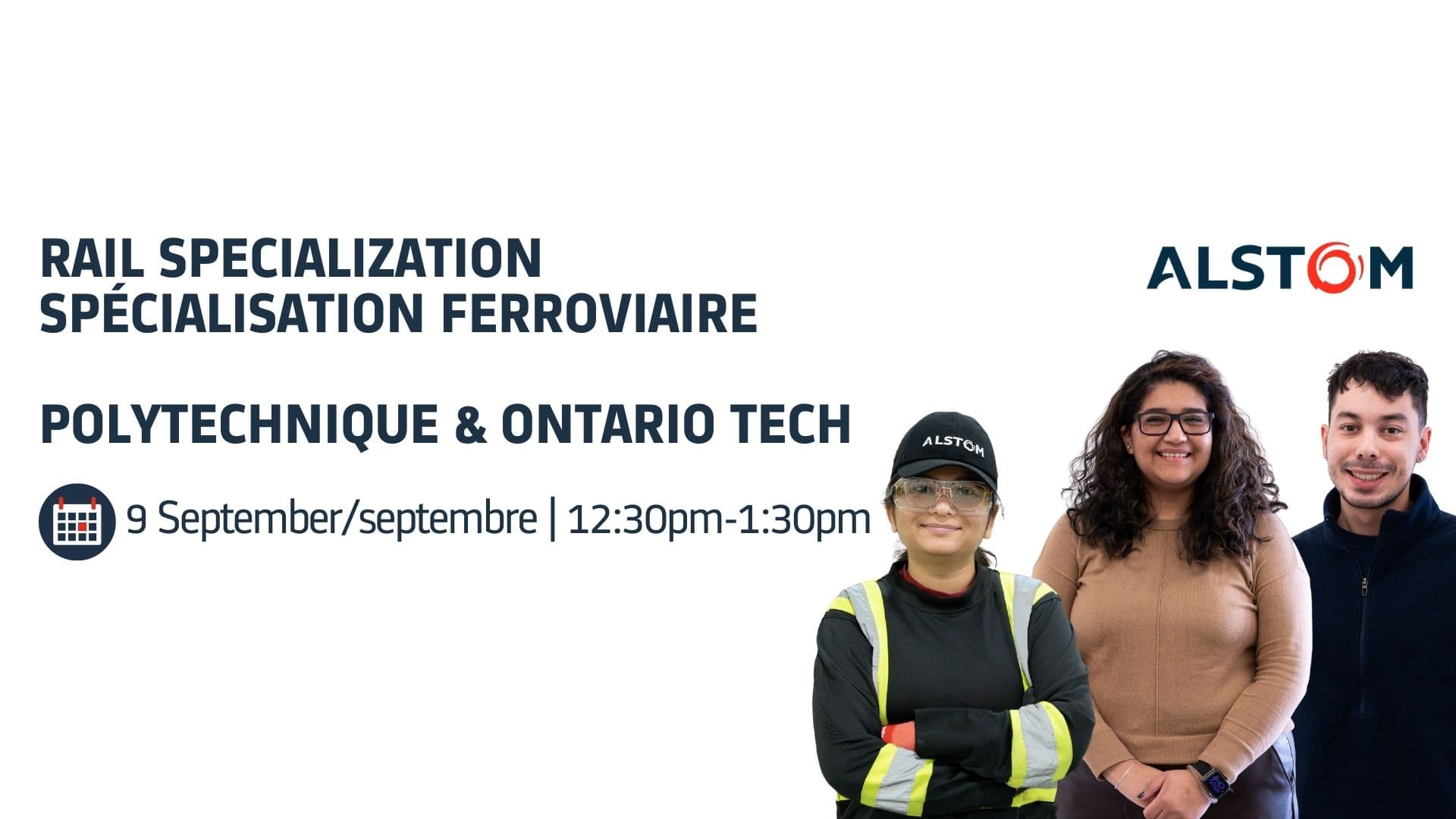 We're thrilled to launch the first rail specialization with OntarioTech and Polytechnique. This is the perfect opportunity to talk to Alstom colleagues that were involved in putting the curriculum together and/or studied at these academic institutions.